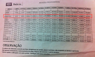 Valor das revisões em São Paulo (SP) – Tabela JANEIRO/11